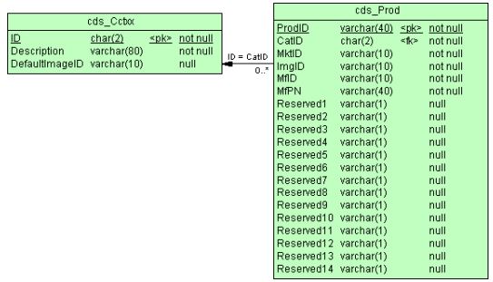 The Cds_Cctxx table is the vocabulary table which contains all classes and category descriptions. A product's category can be determined by joining the Prod