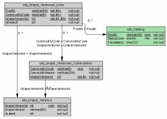 The table contains the links between customer products and UNSPSC commodities for all versions the customer is subscribed to.