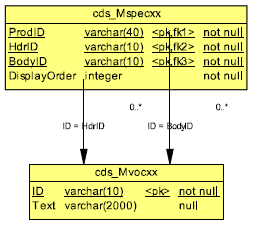 For more details about the cds_Mspecxx and cds_Mvocxx tables please got to the next section Main specifications.