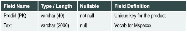 1WorldSync Content Solutions discourages any mapping on the Extended Specifications. Instead, all specifications should be retrieved and displayed using the ProdID as the sole key.